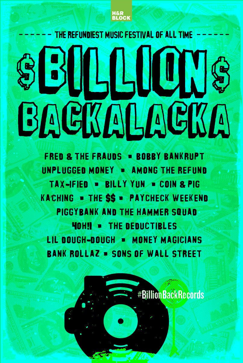 Tax refund themed parody of a Coachella-esque festival flyer.