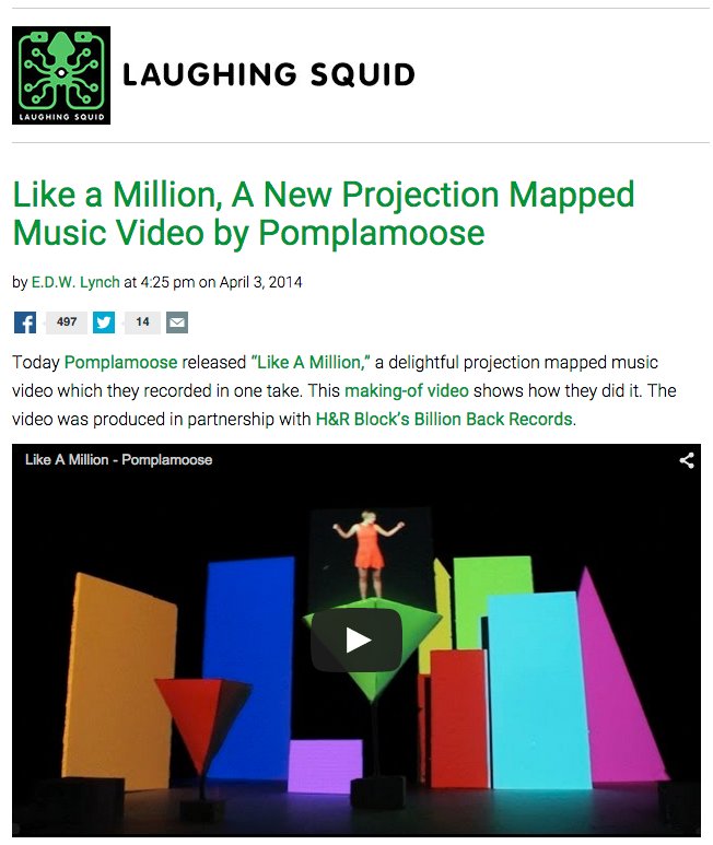 The best song and video came from the electronic duo Pomplamoose, who used texture mapped projections over 3D sets manipulated by hand in real time.