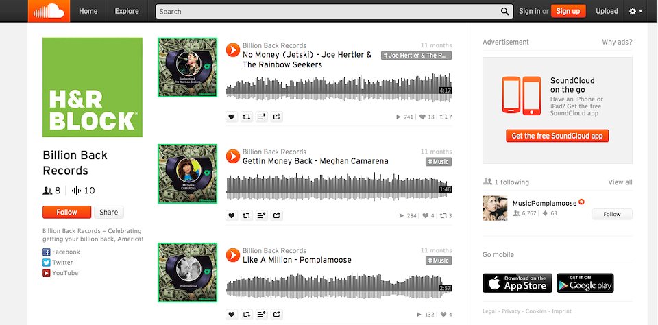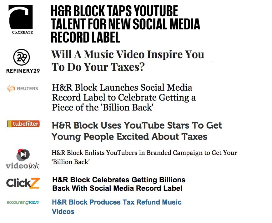 People get stressed out about taxes. And that’s not good for tax preparation company H&R Block. So, to turn tax season from an anxiety-ridden time of procrastination into an exciting time of refund fueled celebration, we launched a record label. 10 artists. 10 original songs. 62 million impressions. 3.6 million video views.
