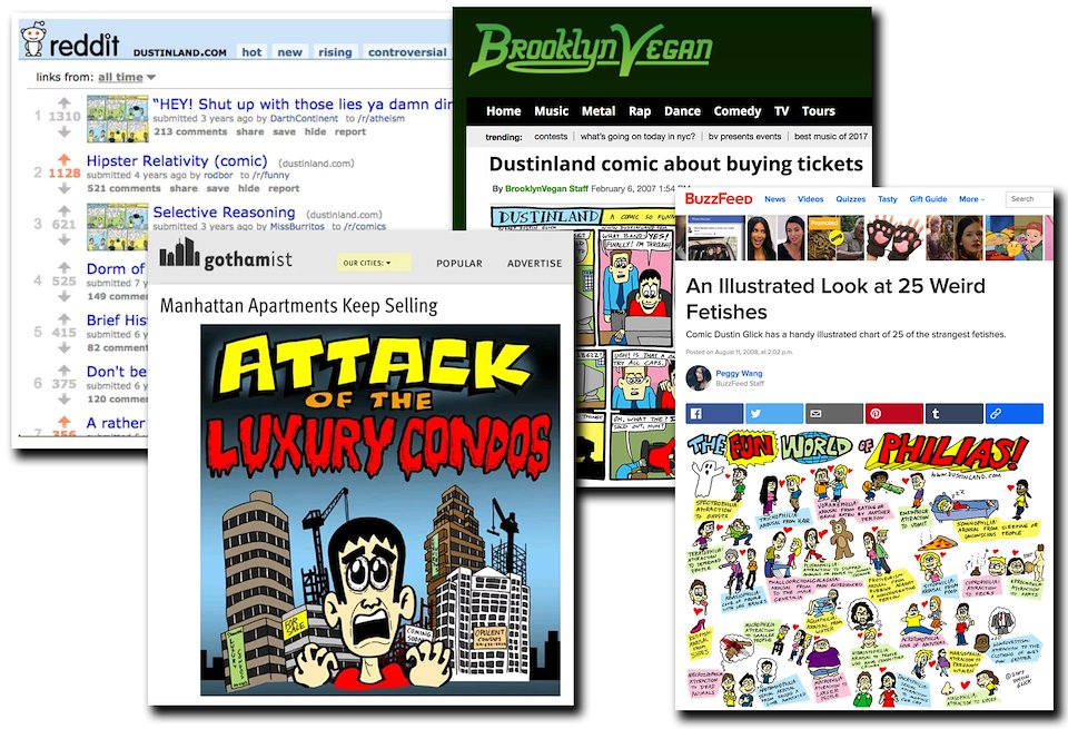 My comics have been featured on the front page of Reddit, and published or picked up by Buzzfeed, Gothamist, Cracked.com, Brooklyn Vegan and many others.