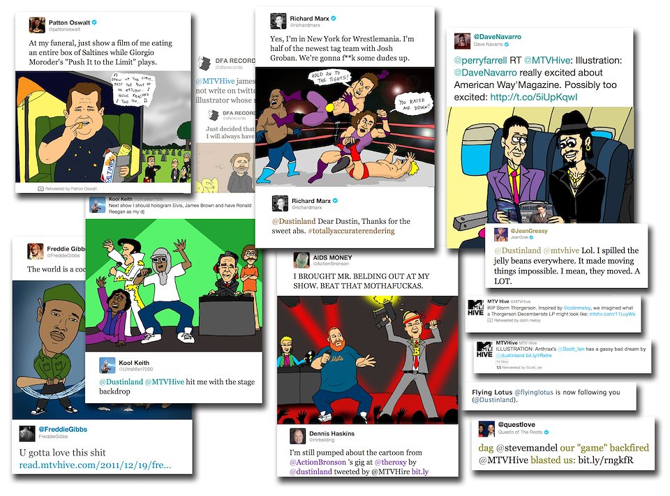 I used to freelance as a cartoonist and writer for MTV. My favorite bit was "Tweet of The Week," where I would illustrate and interpret rockstars' tweets. There’s nothing like waking up to find out you were retweeted by Questlove from The Roots or Dave Navarro from Jane’s Addiction.