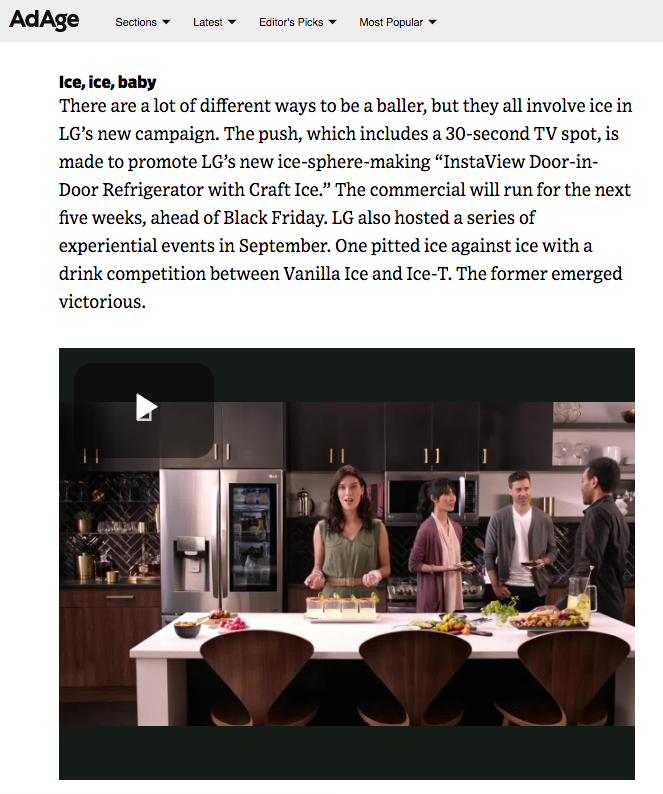 Ad Age highlighted our campaign as one of their picks of the week, while an event starring two famous icy ballers drove some extra PR.